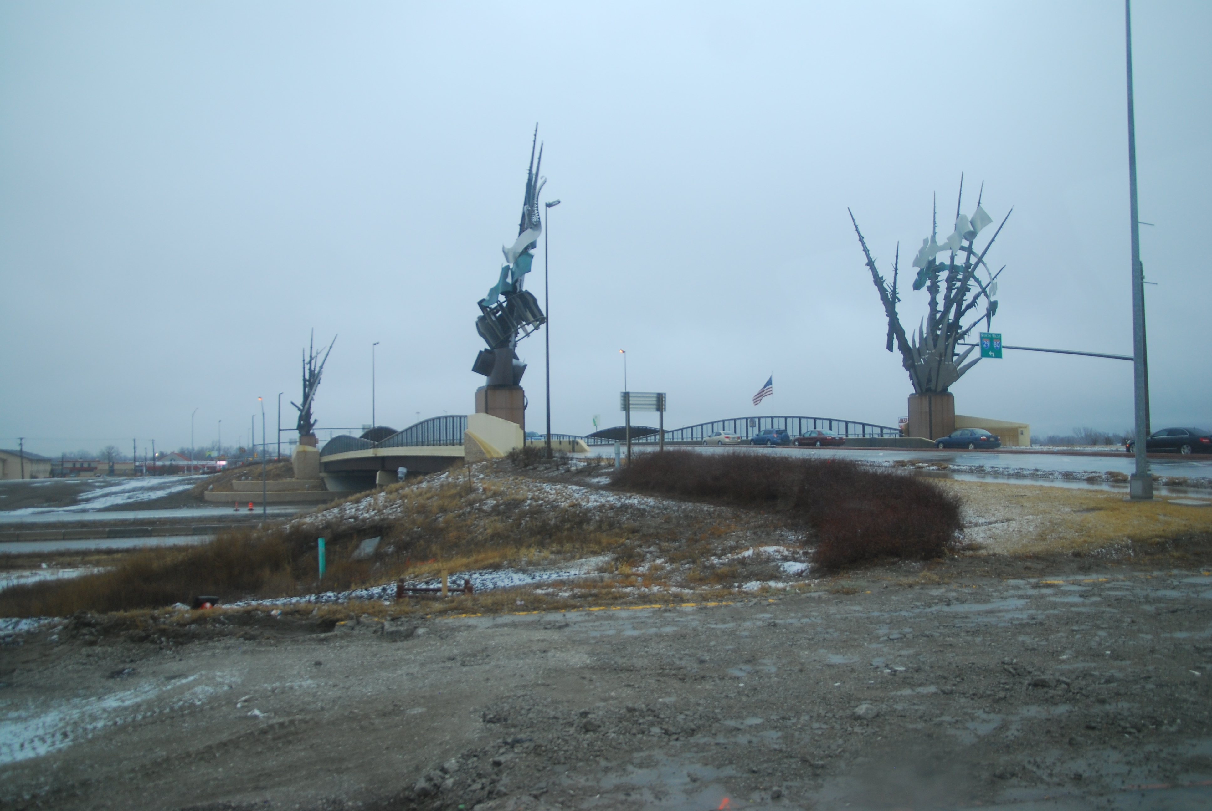 Not sure what to call this. Big steel structures on an overpass on our way to a truck stop. 4 of them.