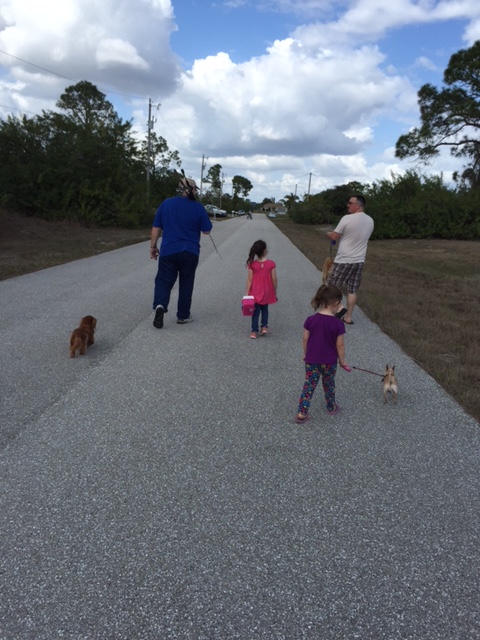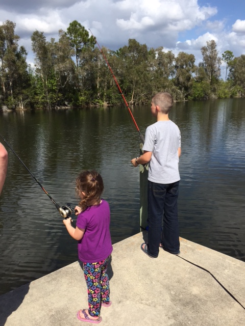 We have spent another wonderful day with the babies today. So much fun. We went to Cracker Barrel for breakfast and then went fishing. Didn’t catch anything but had a lot of fun anyway. Everybody got to get their toes wet a little bit. We would cast for the girls and they would reel it back in. Kaiden is an old pro so he didn’t need any help. We walked the couple of blocks to the water which was nice. We took all the dogs and they seemed to enjoy getting out as well. Just about everybody was grumpy on the way back because it was getting so warm. 85 degrees today but after standing out in the sun for a couple of hours it felt warmer than that here. Kaiden was on his bike so he went ahead and had cups of ice water for everyone waiting on us when we got back to the house. Very thoughtful and appreciated.