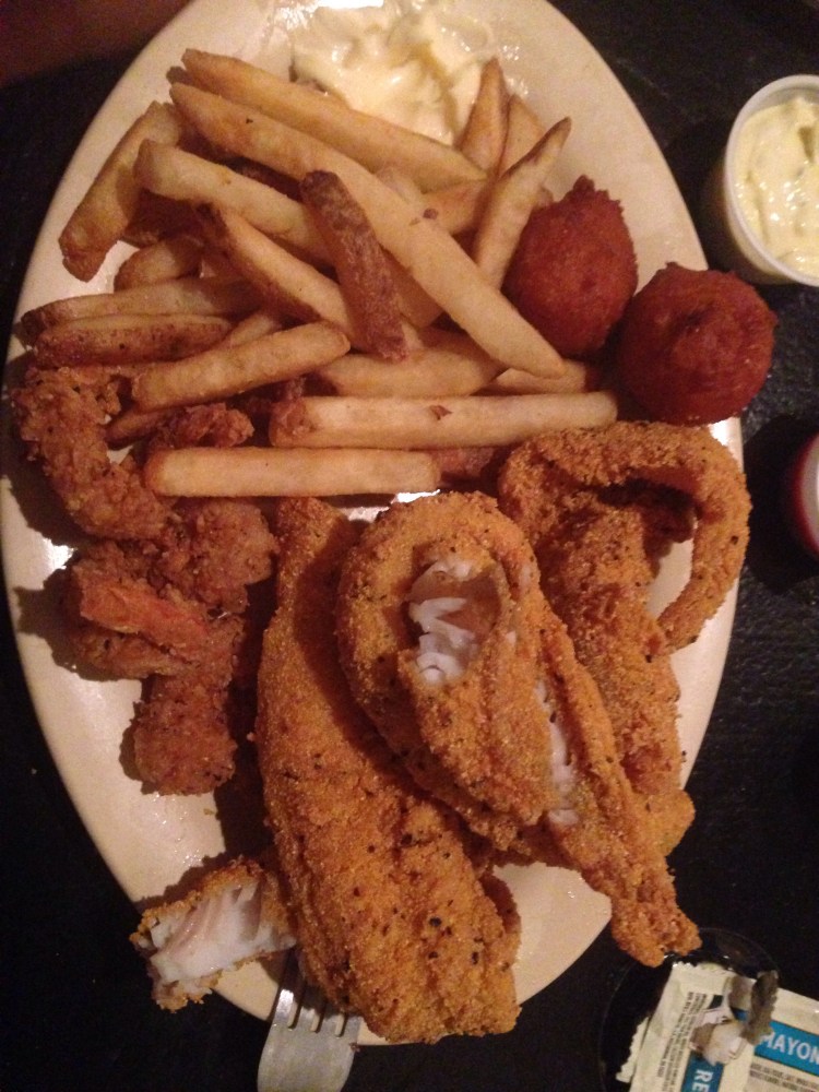 We got an added surprise as there is a restaurant, Penn’s, right behind the truck stop. Parking lot was full, which is a good sign, so we went in. I know I had catfish for lunch but the catfish and shrimp dinner here was so much better. See below.