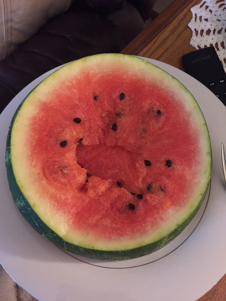So excited. Found a watermelon with seeds. Hard to find these days. Those seedless ones are tasteless!