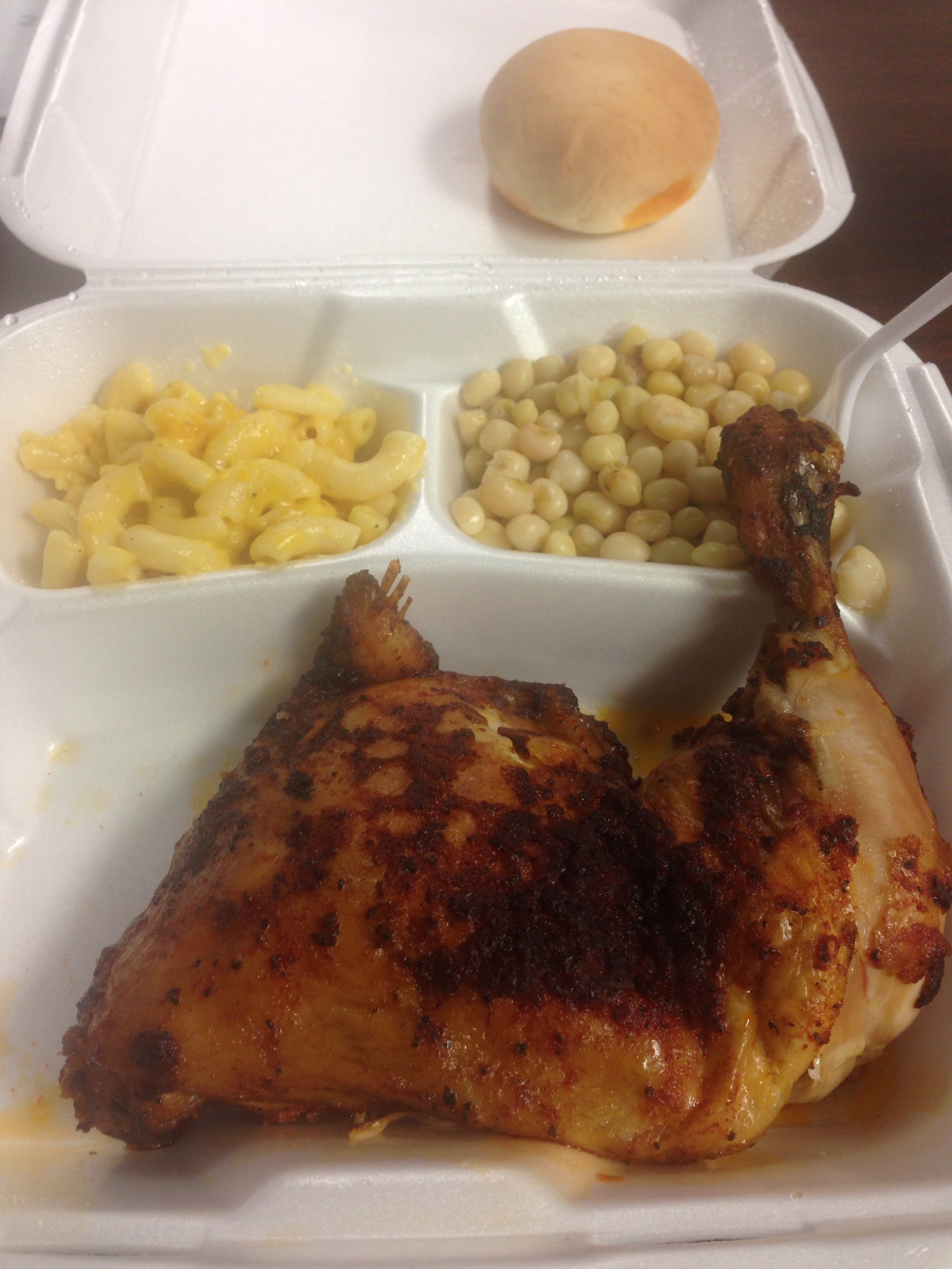 DG: Looks yummy. We get lunch everyday from a place called Momma’s Kitchen. They are only open from 11:00 to 2:00 each day and their slogan is “Nothing out of a can”. Good home cooking. Today we had roasted chicken. Very tender.
