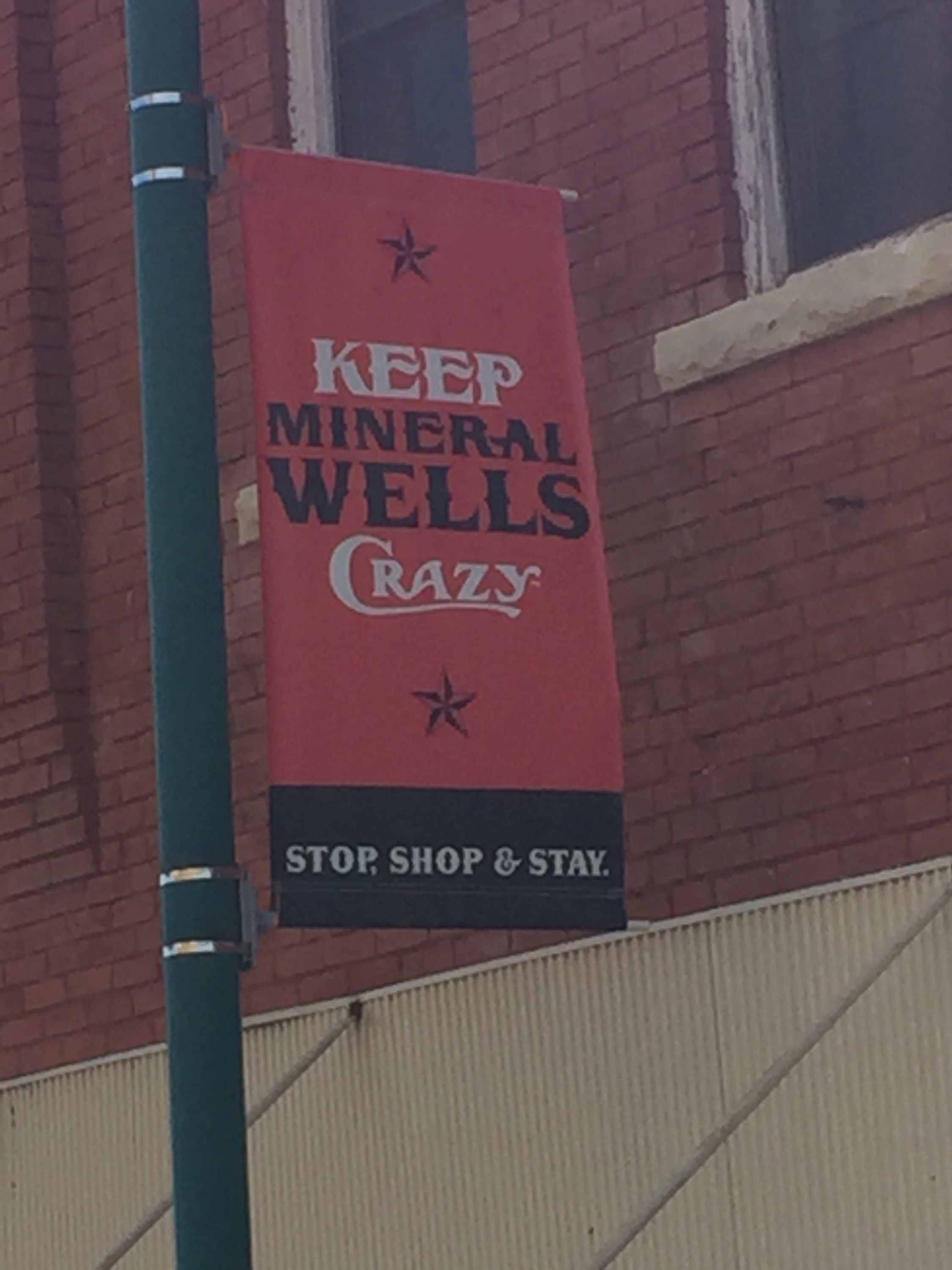 We have stopped for the night in Lampasas, Texas. Neat little place. We have driven all day through these little towns. Most of the stores are closed which is sad. One place we passed through was Mineral Wells, Texas. There is a huge old run down hotel sitting in town around an almost empty town. Apparently it used to be the go to place for mineral water and healing baths. Now it’s all run down and they say it’s full of ghosts.