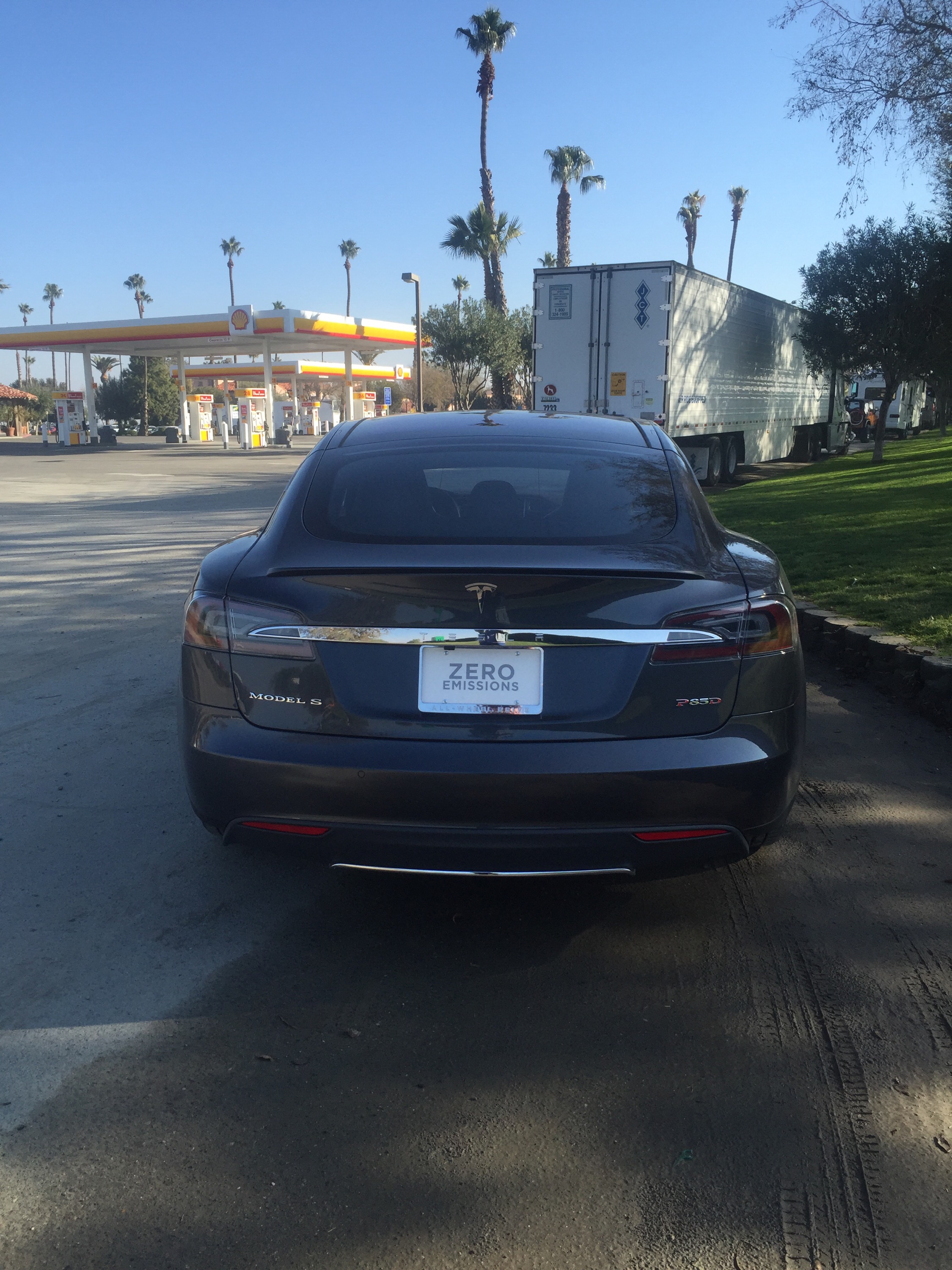 Besides the regular gas and diesel pumps they have a Tesla charging station as well as a battery exchange. Neat.