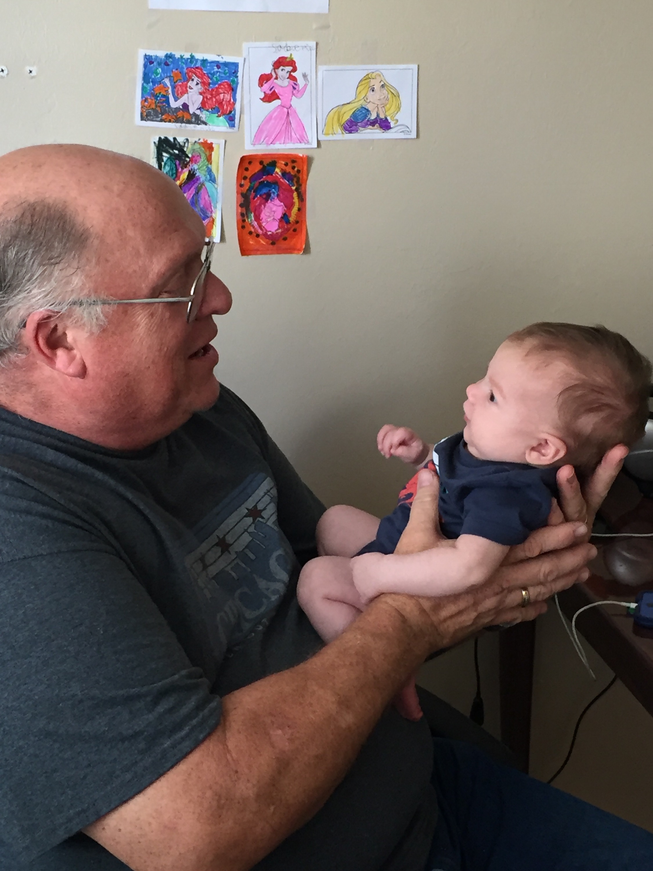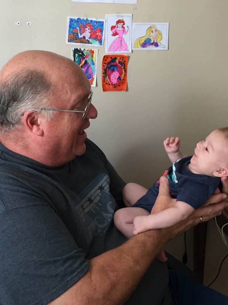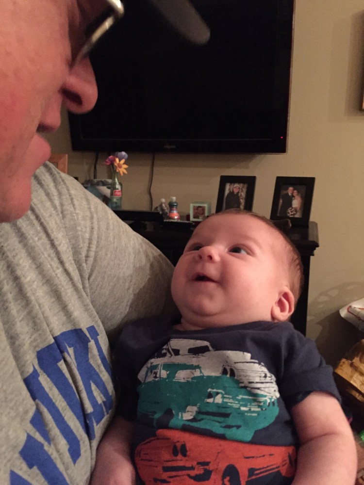 Where was I? Oh yea. Big surprise for the kids as they were not expecting us until tomorrow. Sadie gets so excited she cries and Maddie comes running for papaw. Kaiden is pretty ambivalent. Unless there are gifts involved. I think he was glad to see us. I got several big smiles out of my new grandson. And he got more than several from me.