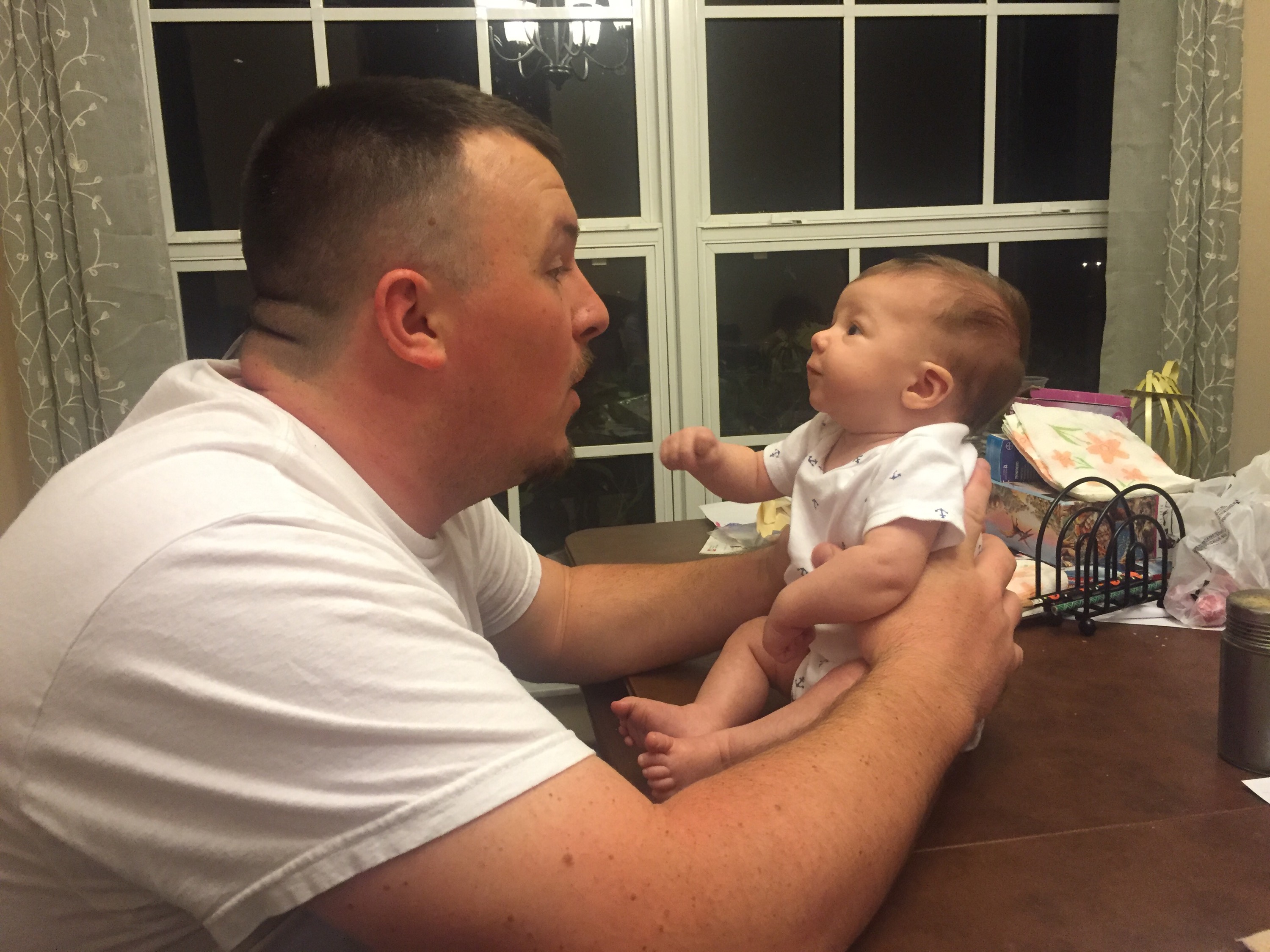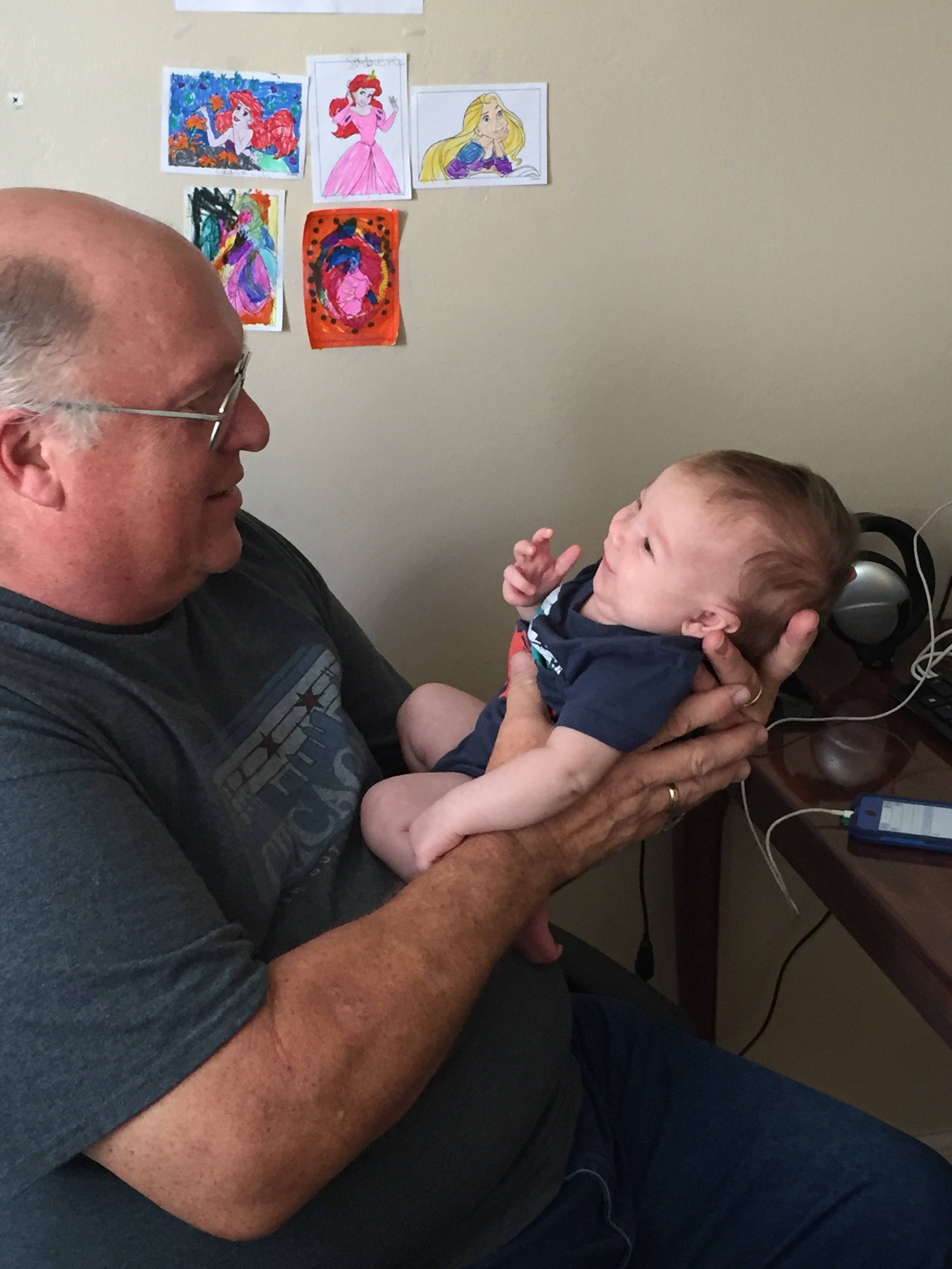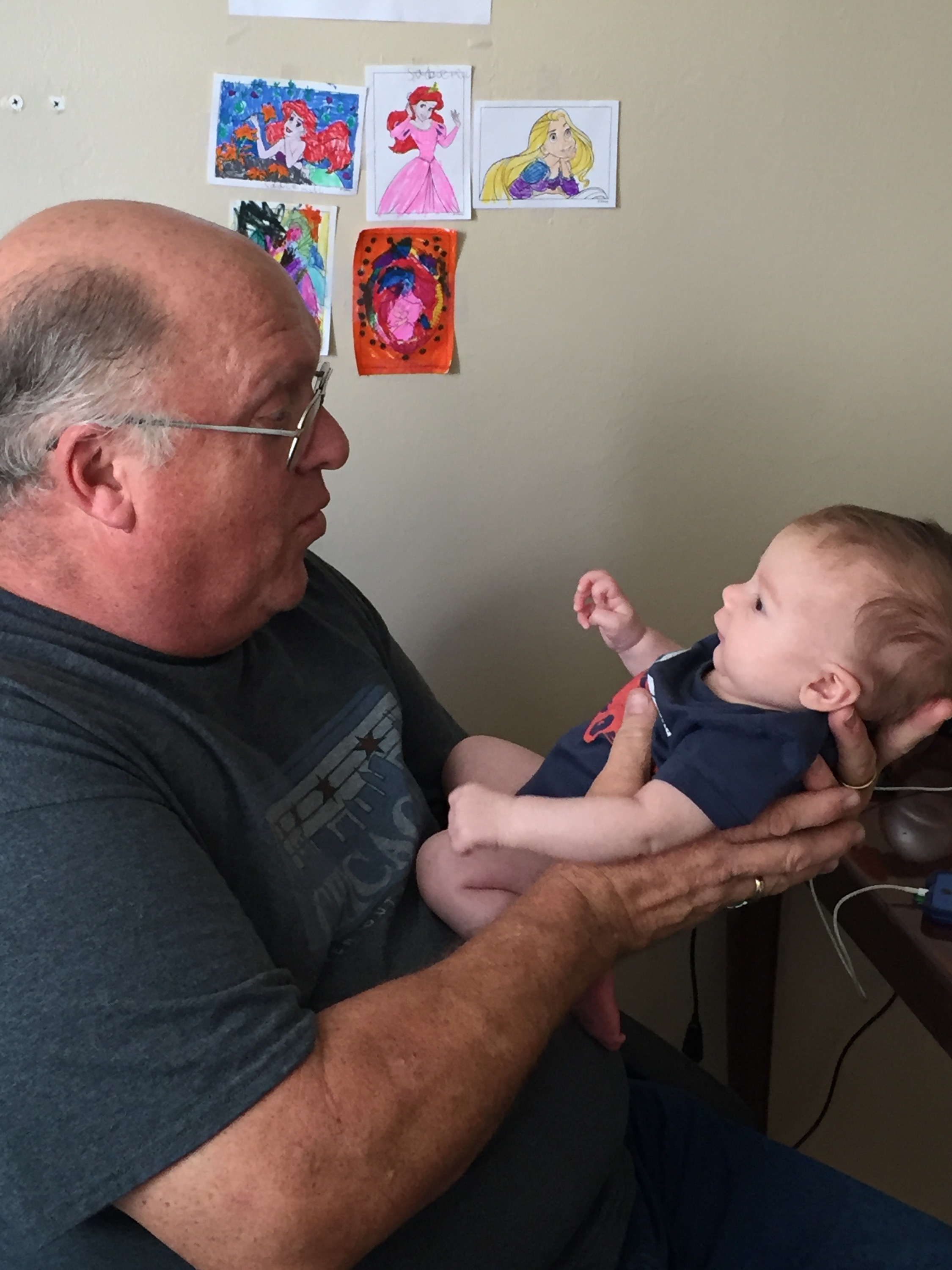 Where was I? Oh yea. Big surprise for the kids as they were not expecting us until tomorrow. Sadie gets so excited she cries and Maddie comes running for papaw. Kaiden is pretty ambivalent. Unless there are gifts involved. I think he was glad to see us. I got several big smiles out of my new grandson. And he got more than several from me.
