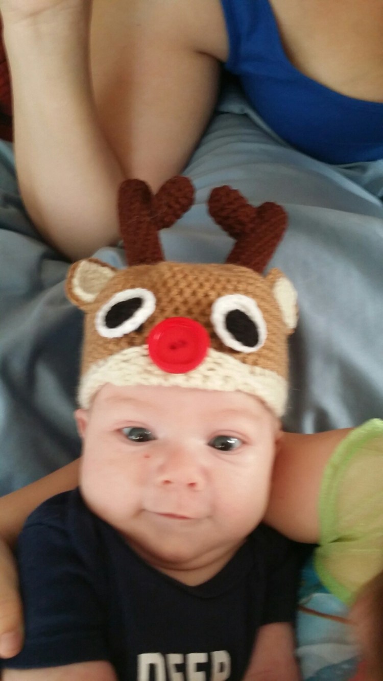 Melissa’s sister Megan made a hat for Alex. So cute!