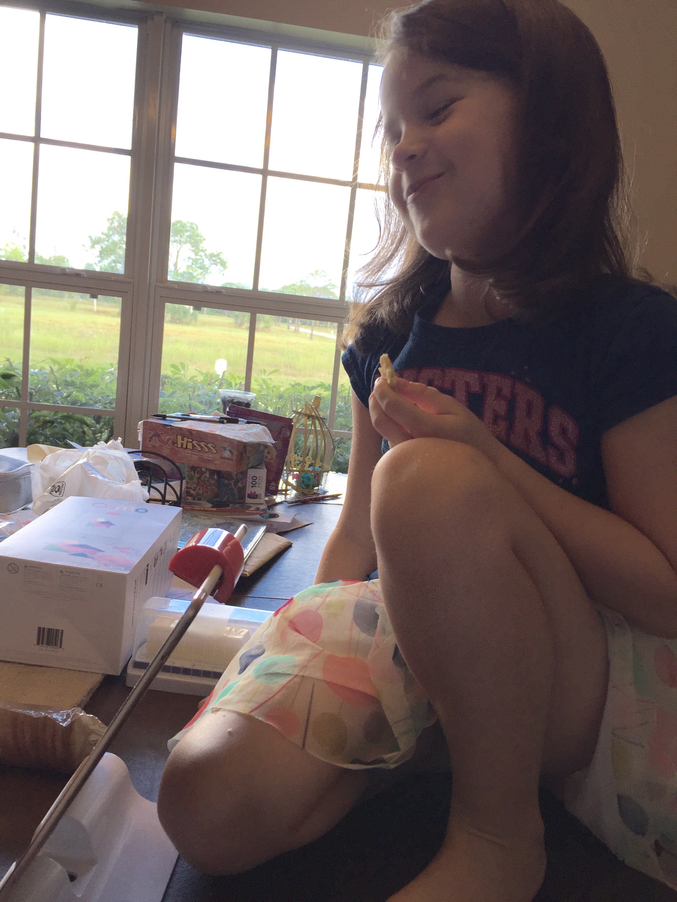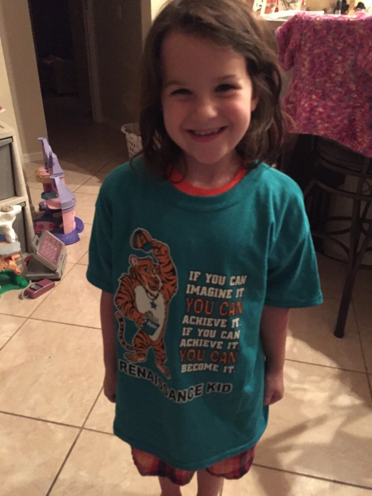 Sadie got a shirt at school for being a renaissance kid which means great grades.