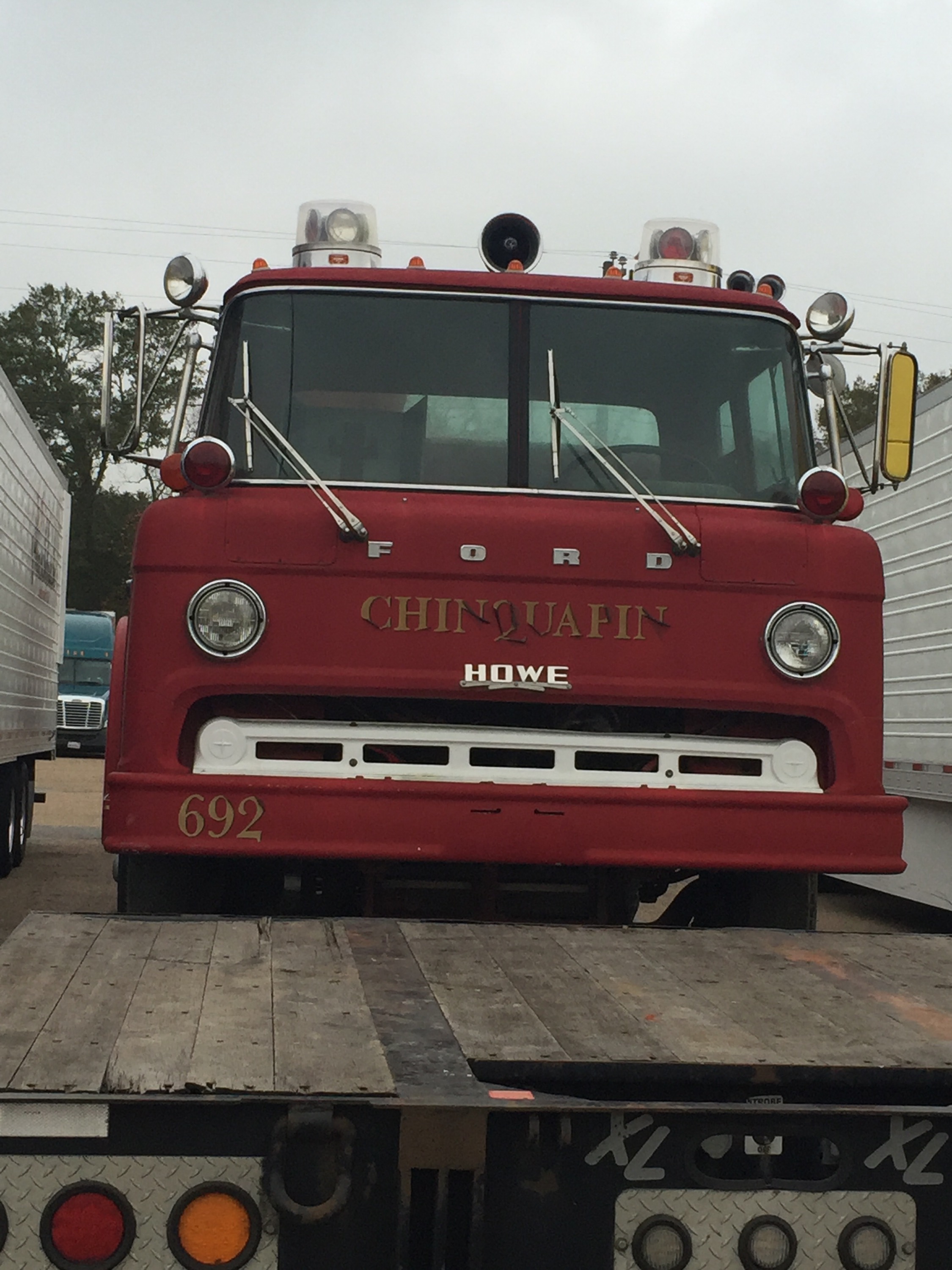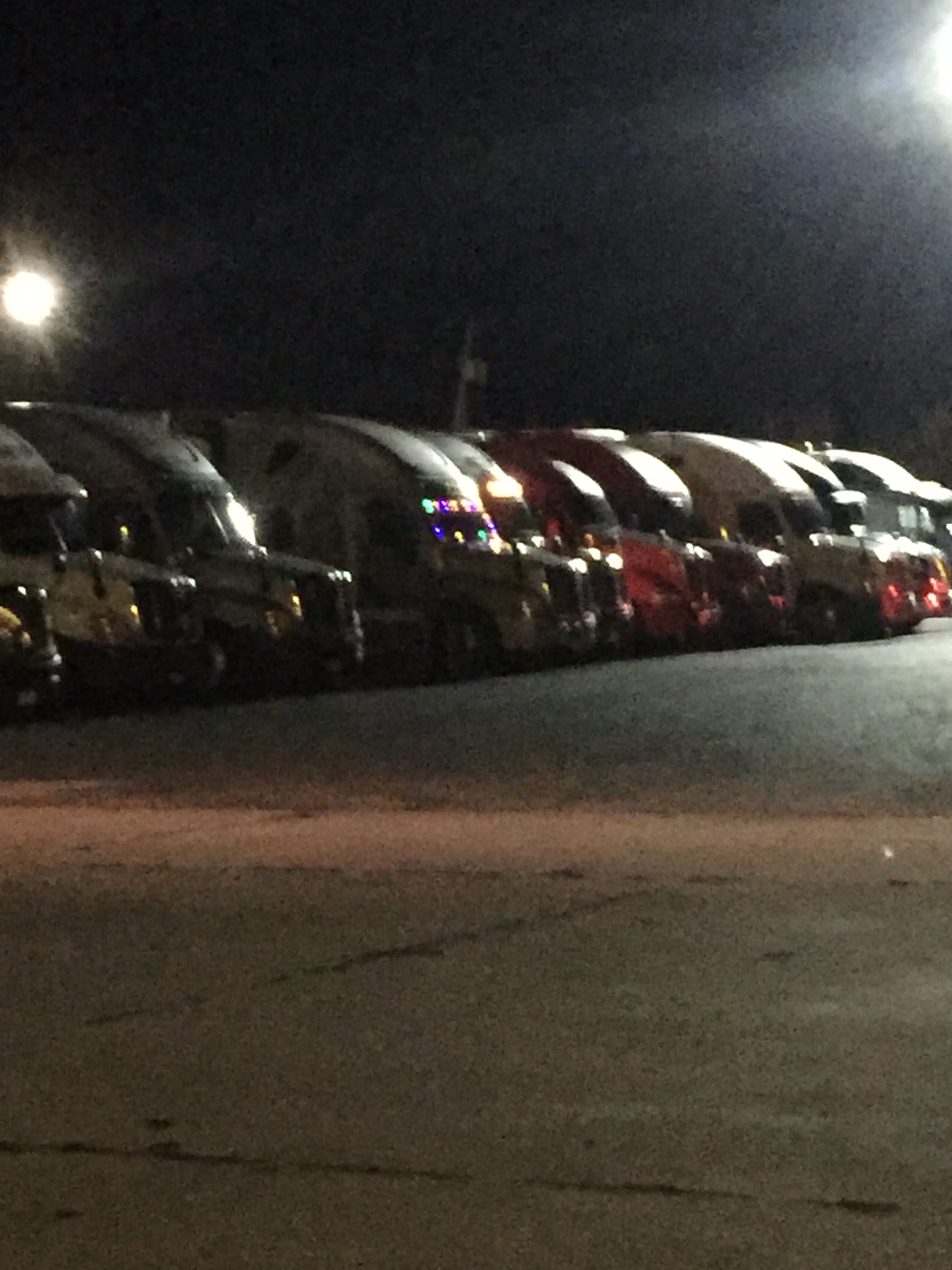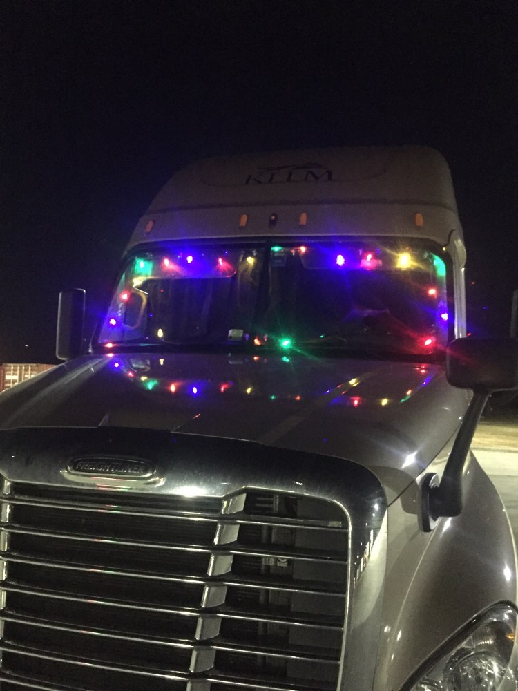 The truck is decorated for Christmas. Will turn the lights on when we park for the Night.