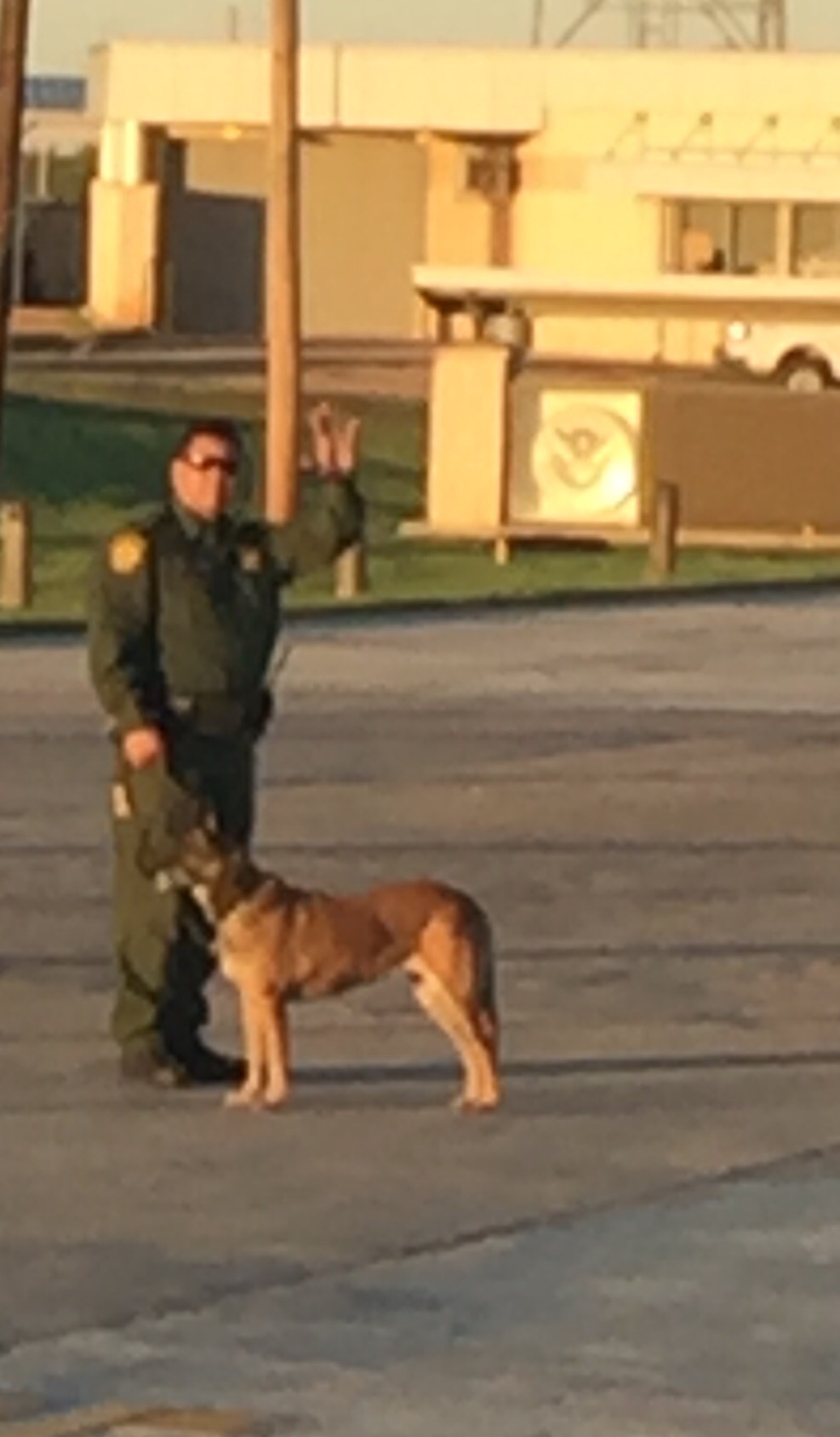 The border guards are on their toes today. This guy was out in the parking lot telling everyone which lane to go to.
