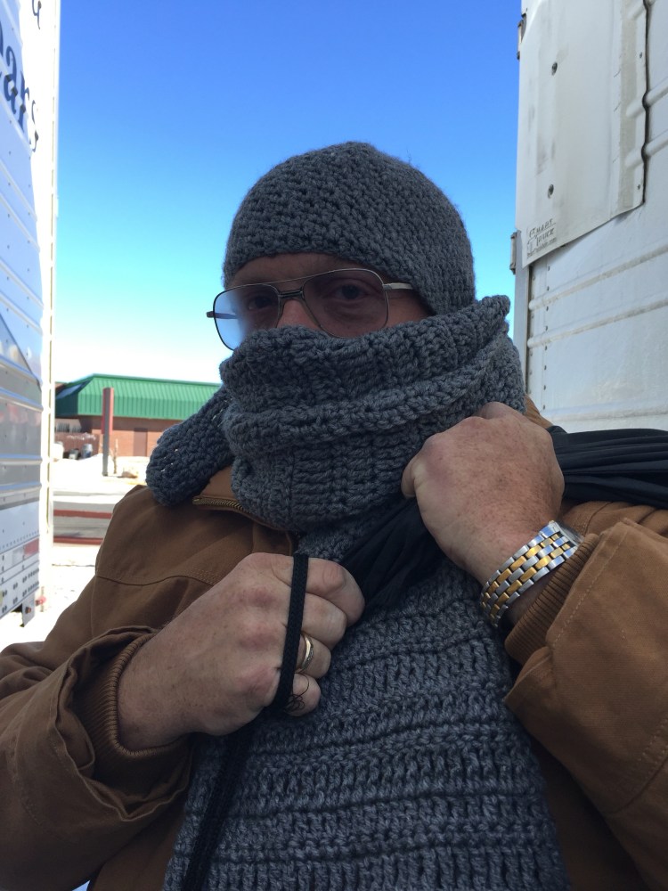 This is him when we went in the truck stop. Of course it is only 14 degrees.