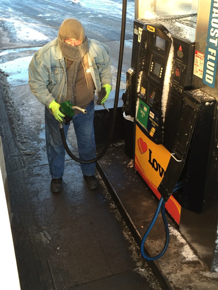 Add another title to Annie’s already extensive list of things she does on this truck. Now she is maintenance supervisor. Heck with supervising, she is the maintenance department. We have two sources of heat on this truck. One is the engine of course. This works by way of the idle manager system. Start the truck, put gears in high range, hit the cruise control button then adjust heat or cool via a thermostat control in the bunk area. What this does is allow the engine to run only when needed to cool or heat the cabin shutting the engine off when the preset temperature has been reached and then starting it again when temperature falls four degrees below or four degrees above preset temp depending on whether you want to be cool or warm.