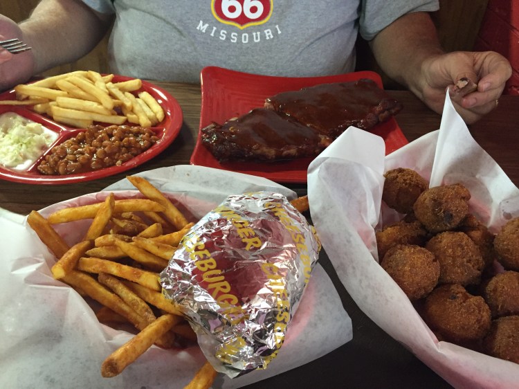 DG: If you are ever passing through Morrilton, OK, because I doubt you will be going there purposefully, you gotta try out the fare at Morrilton Drive In at exit 107 on I-40. Besides killer BBQ, I noticed the smoke from the truck stop across the street and said to myself, “Self, looks like somebody is smoking some meat”. And I was right. So there we went for to have lunch. Looking over the menu, which cried out to be photographed, there were items on there that showed a degree of imagination much different that that found in the boardrooms of major chain restaurants. For instance, the Triple Giant Super Bacon Cheeseburger. Oh, there was a time I would have had to try that. At $23.99 I’m sure this is meant to be shared. I would have liked to see one at least but none were ordered while we were there. And there were various degrees of smaller burgers down the line to the regular all American style. And of course there was the BBQ, pork and beef, and the best danged hush puppies I have had in I don’t know when. Sides of baked beans, French fries and coleslaw rounded out the slab dinner that I chose. Usually we save some of our meat, be it whatever, for Precious, and I did, but she came real close to not getting dinner this day. And I had a Woo Pig Chewy milkshake for dessert. That be chocolate and vanilla ice cream with chocolate chunks and comes in sizes small, large, TUB and Monster. I got a large which was a regular size portion at most other establishments and I wish now I had at least asked to see the Monster size. Or the Tub. I looked for a cup that might be used for either of these but did not see one that might be associated with either size description.