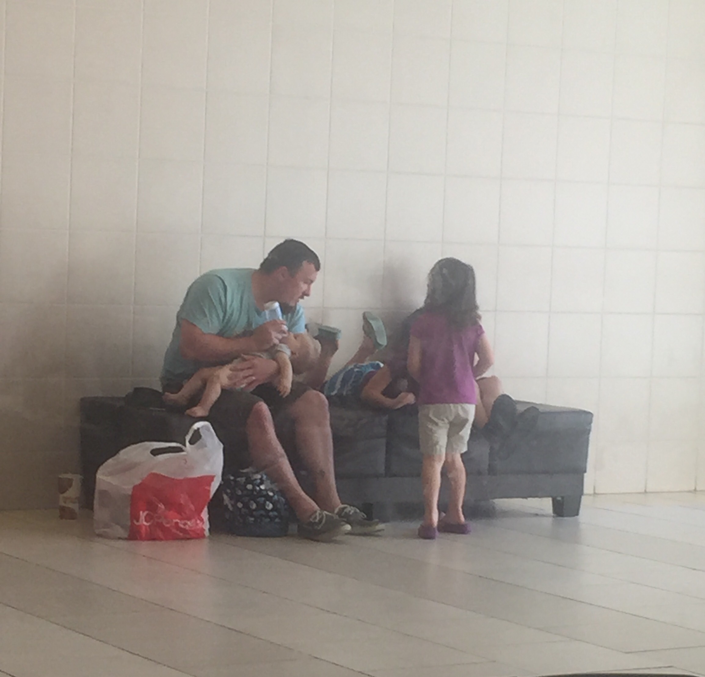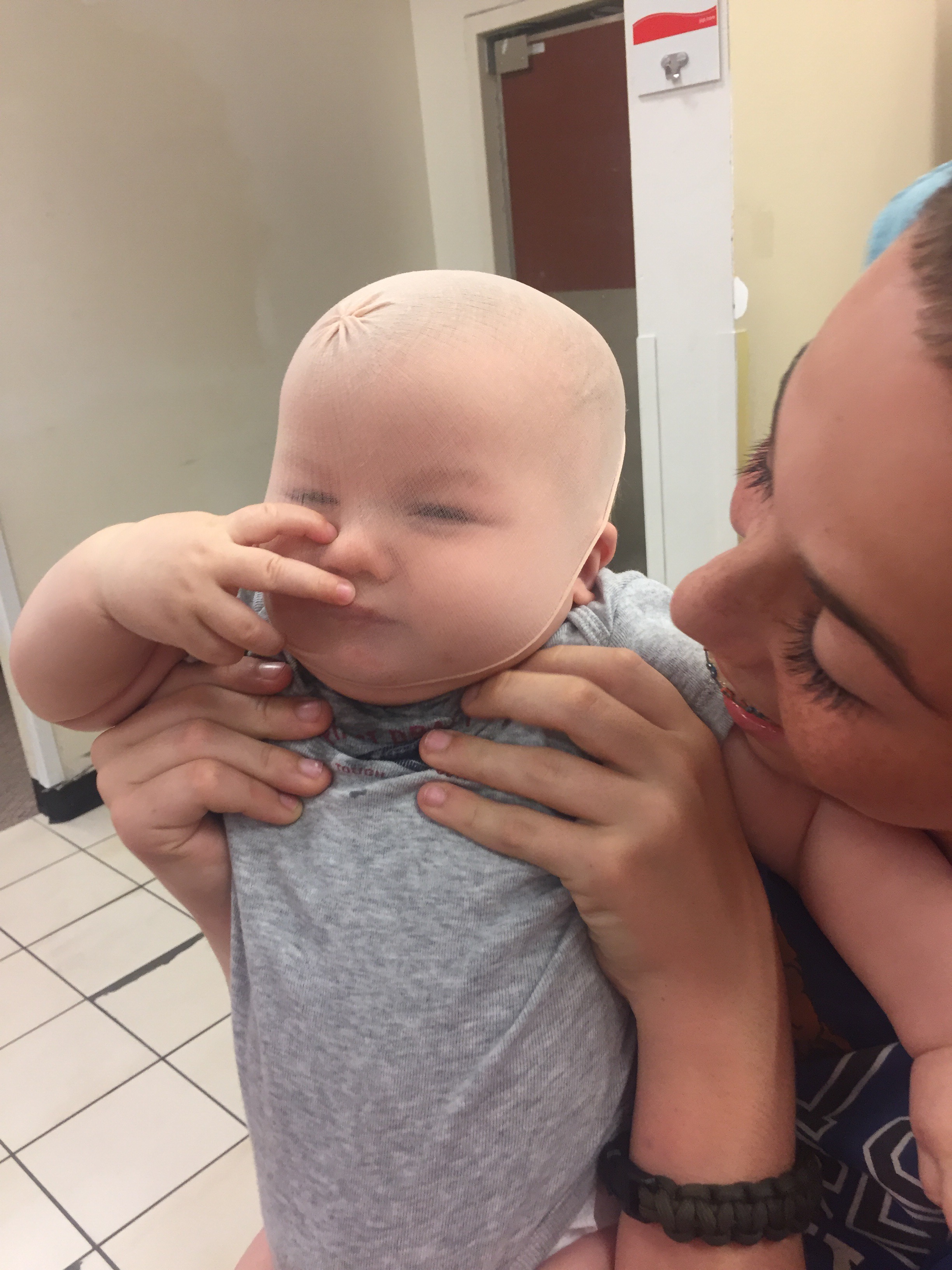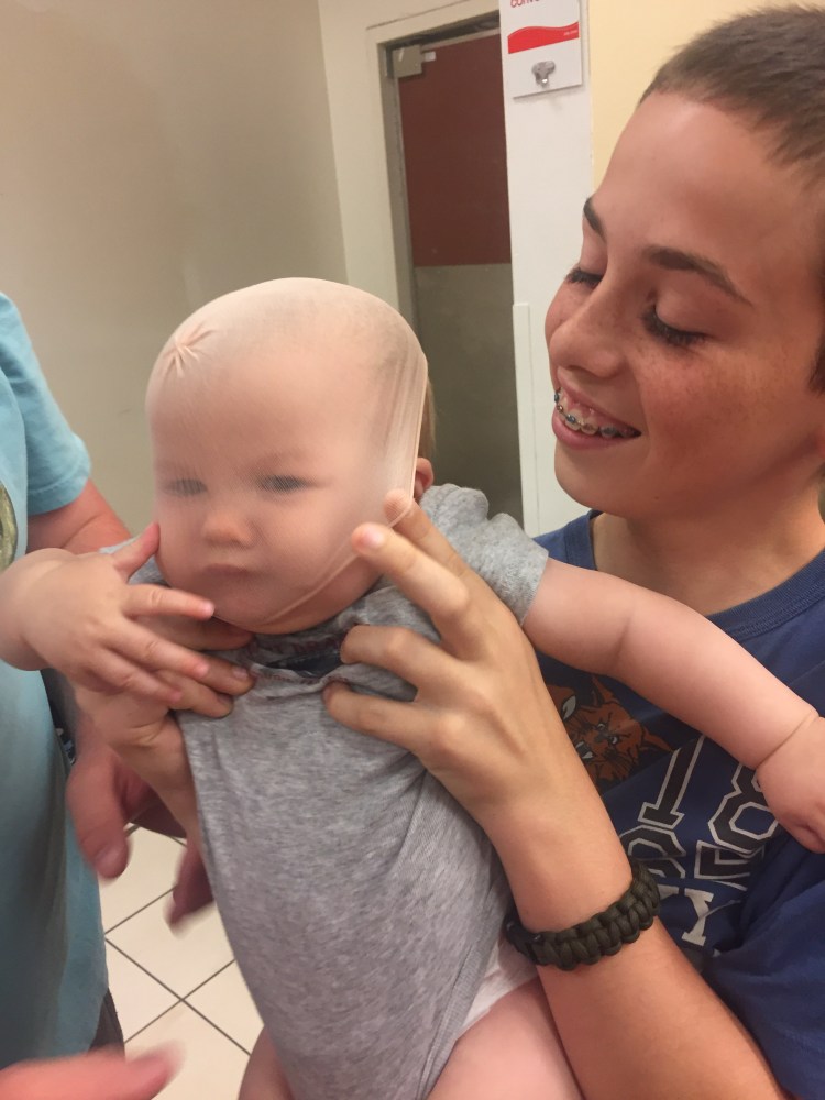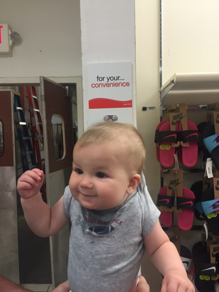 Then while the girls were in the dressing room the guys were up to no good. Luckily they had a baby to play with.
