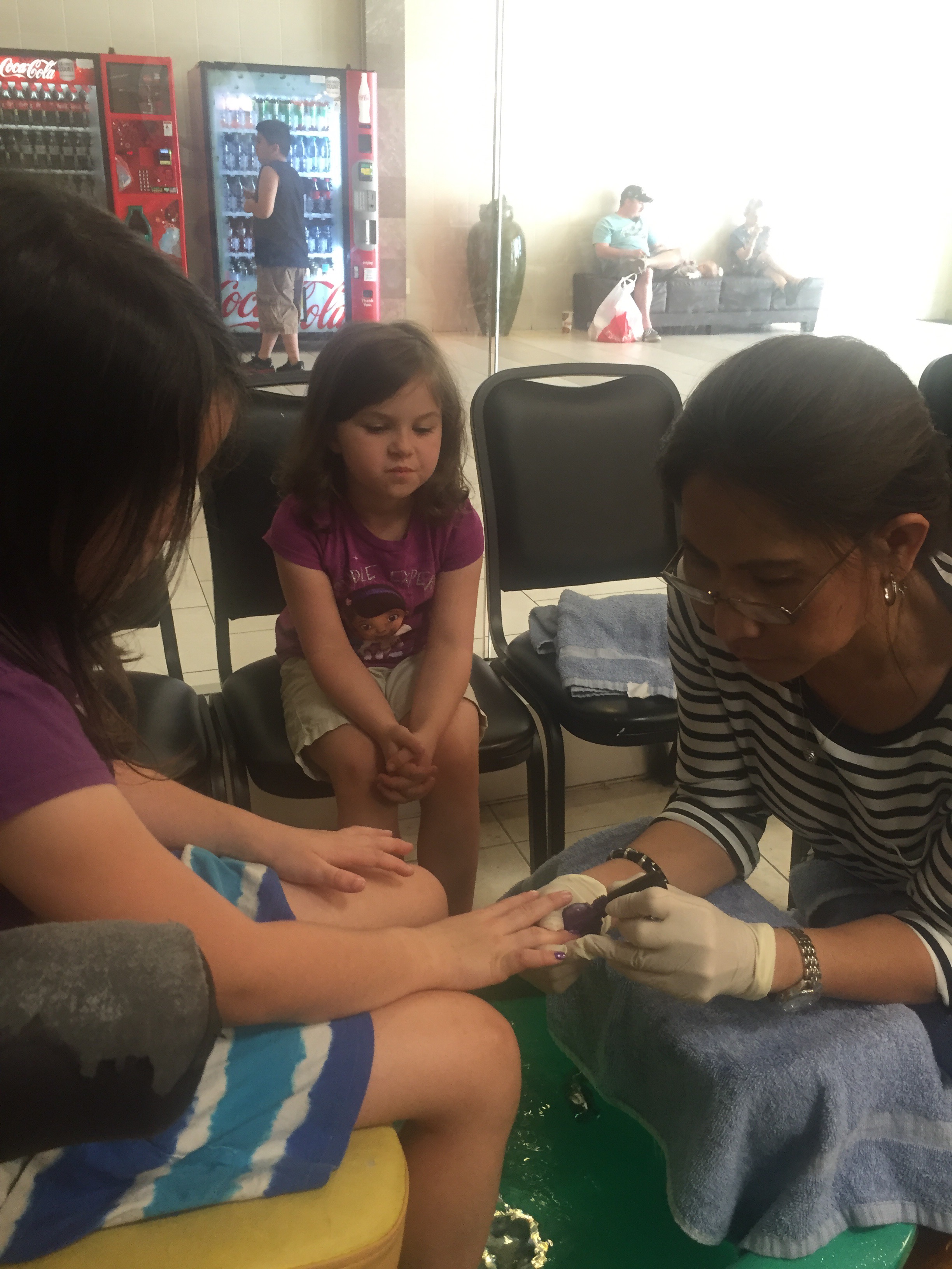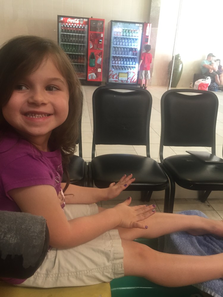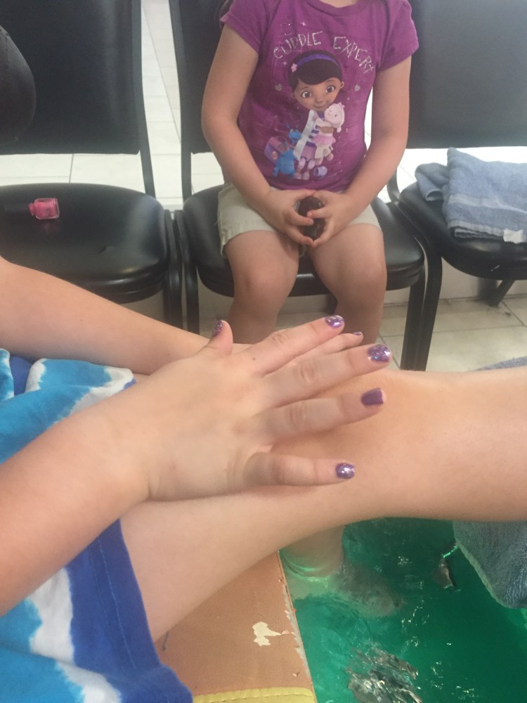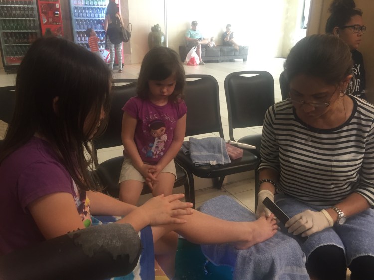 Now for the reward of a day at the mall. A pedicure for papaw.