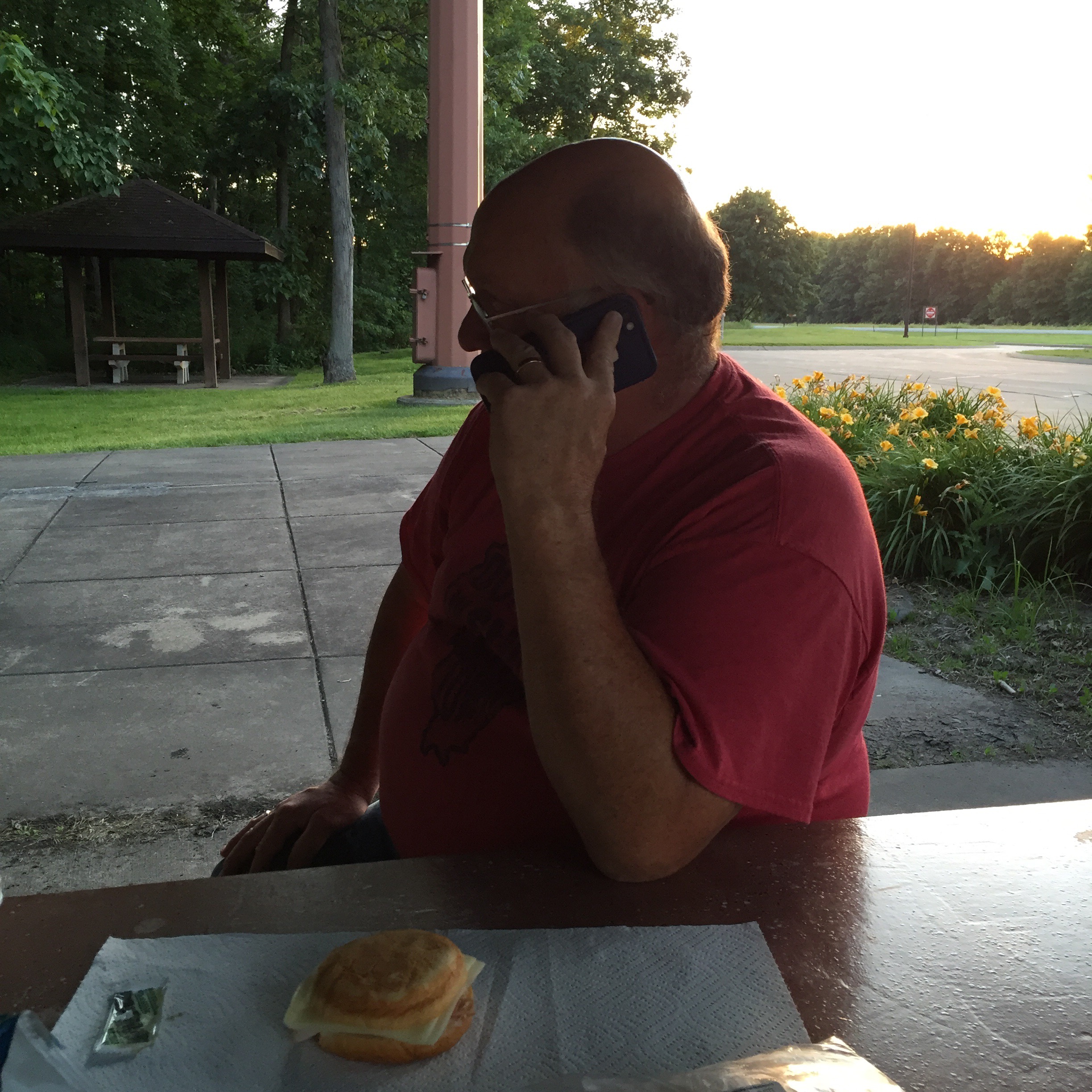 7:30 pm. Stopped for the night at a rest area in Mount Vernon, Illinois. Ran in to the bathroom real quick and I heard this girl say she was going in the men’s room. Well, Greg just went in there so this should be interesting. Turns out she didn’t see the women’s restroom and was not going in the Unisex bathroom and then yelled and said the F word a couple dozen times about how this was against women’s rights and how she didn’t serve in the F military for this kind of stuff. Well you get my meaning. It was a very colorful conversation to say the least. She said she understood the ransgender thing but didn’t want a man in the women’s bathroom upon which I remarked “well, didn’t you just come out of the men’s room?” She is wearing very high short shorts and a tank top so I told her the boobs gave her away. Then, somehow we go from that to gorillas and how she didn’t serve in the military for gorillas to get shot because a woman couldn’t keep up with her kid. She has 6 f….. Kids and knows where each one of them are at all times. Hers never fell in any cages at the zoo. Her boyfriend is staring at the map in the rest area like its a great novel. Then he and Greg are looking at it. Too funny.
